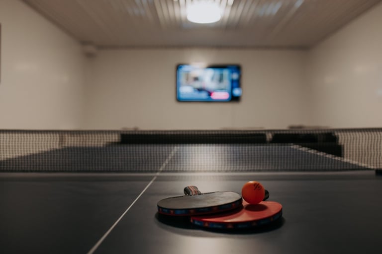 Vous y trouverez une table de ping-pong, un baby-foot, un jeu de fléchettes, ainsi qu’un coin détente avec sofa et télévision. Que ce soit pour des parties animées, un petit défi amical ou simplement relaxer en fin de soirée, cet espace est idéal pour prolonger le plaisir et créer de beaux souvenirs en famille ou entre amis.